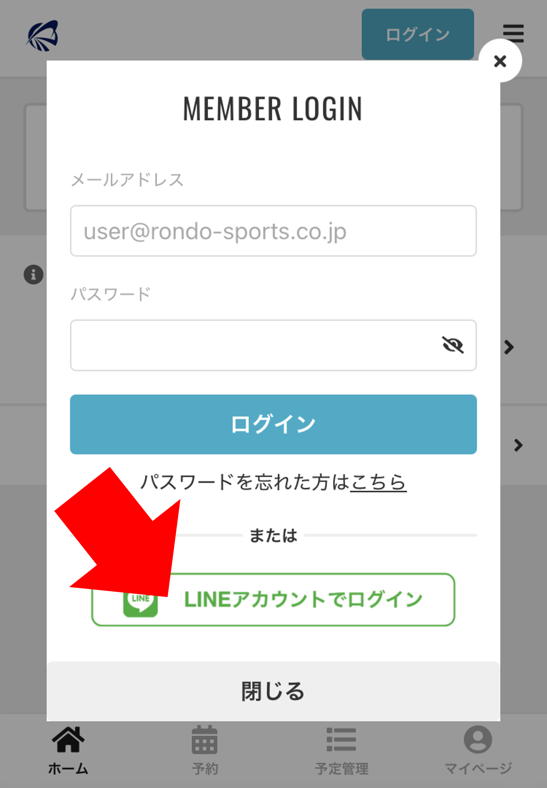 ログイン画面より「LINEアカウントでログイン」または